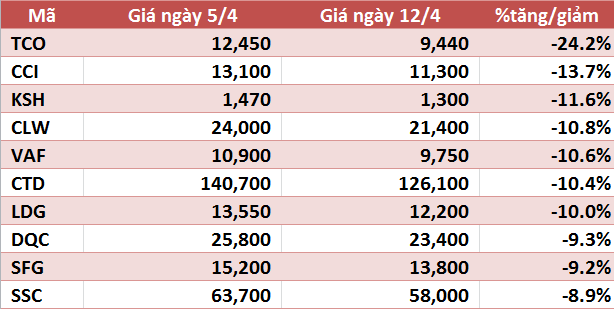 TCO cũng là cổ phiếu duy nhất sàn HoSE có mức giảm giá trong tuần trên 20%.