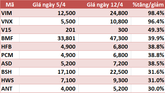 10 cổ phiếu tăng/giảm mạnh nhất tuần: VIM và VNX tăng trên 90%, VHG tiếp tục gây chú ý