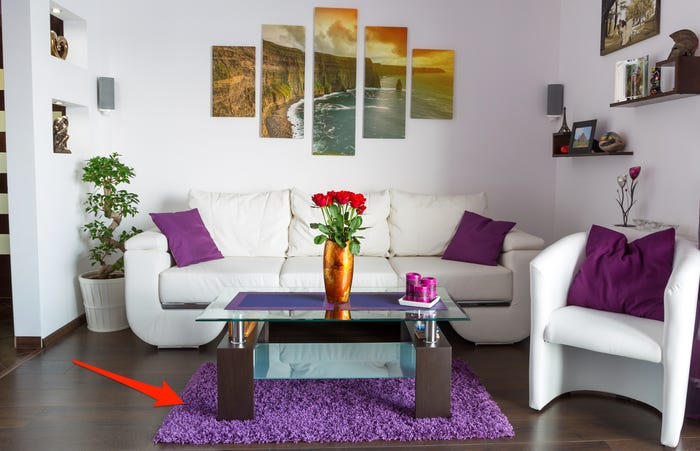 Nhà thiết kế này đưa ra lời khuyên nên sử dụng thước dây và tạo các đường viền giả trên sàn để dễ hình dung về kích thước một tấm thảm phù hợp cho phòng khách.