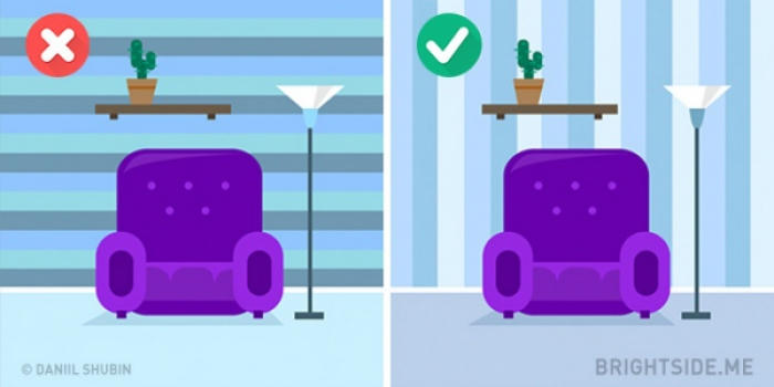 Chúng ta đều biết rằng những giấy dán tường màu sắc tối có thể khiến cho căn phòng có cảm giác nhỏ hơn diện tích vốn có của nó. Chính vì vậy, màu tối được coi là khắc tinh của những không gian nhỏ, hãy lựa chọn những gam màu sáng cho nhà nhỏ của bạn. Tương tự như vậy, giấy dán tường họa tiết kẻ dọc sẽ tạo cảm giác thoáng đãng và có nhiều không gian hơn. Nếu bạn có thể kết hợp cả hai yếu tố màu sáng và họa tiết kẻ dọc thì hiển nhiên bạn đã giúp nhà mình trở nên rộng rãi hơn rất nhiều.