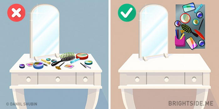 Đồ trang điểm dù ít hay nhiều thì bất kỳ người phụ nữ nào cũng sở hữu vài món, một vài sản phẩm sẽ thường xuyên được dùng như kem chống nắng, son, lotion, kem dưỡng ẩm…vài món đồ khác thì lại ít được dùng hơn. Để tránh việc chúng chiếm hết cả mặt bàn phấn, hay rơi ra khỏi ngăn kéo hoặc khay để đồ, bạn có thể tạo thêm một chiếc bảng nam châm để giữ chúng trên tường.