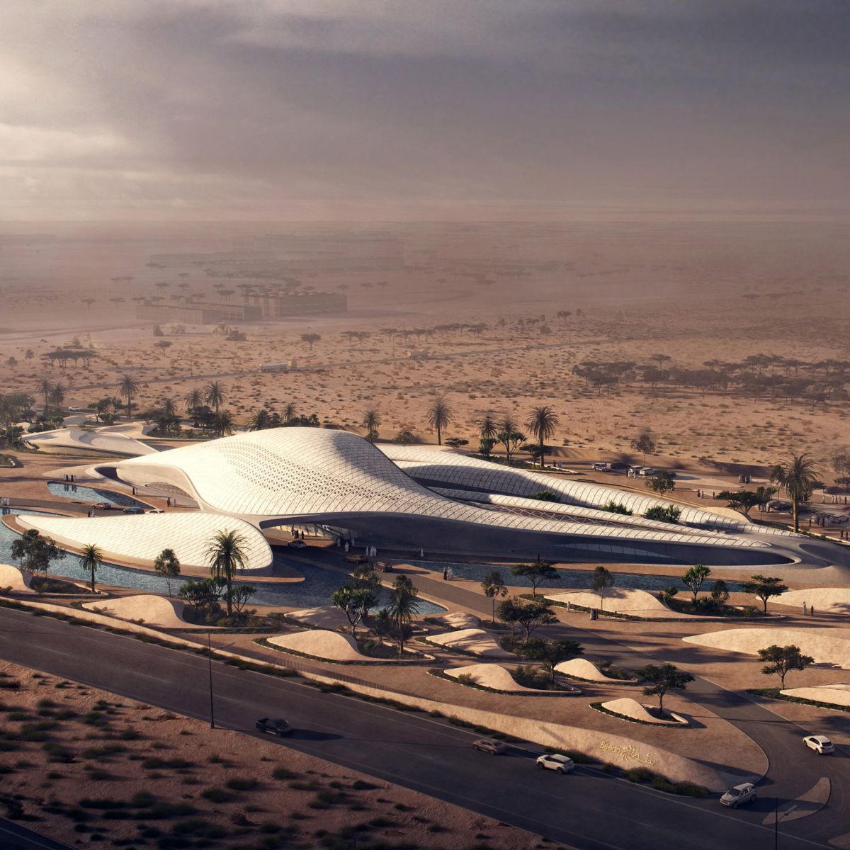 Được lên ý tưởng bởi kiến trúc sư quá cố Zaha Hadid, tòa nhà có một lớp vỏ tròn trịa để bổ sung cho khung cảnh sa mạc và còn được thiết kế để chịu được các điều kiện thời tiết khắc nghiệt.