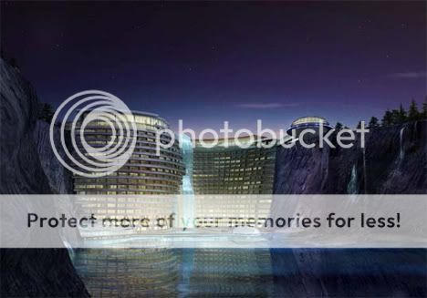 Khách sạn Songjiang thiết kế bởi KTS Atkins nằm tại 1 miệng vực ở huyện Songjiang ngay bên ngoài Thượng Hải, Trung Quốc. Cái lạ của khách sạn là mái xanh (green roof), sử dụng năng lượng sạch từ nhiệt và có nhà hàng và phòng hội trường dưới nước. Vị trí này rất lý tưởng cho các môn thể thao và giải trí như bơi lội, thể dục thể thao nước, leo núi và nhảy Bungee (cột dây vào 1 chân và rơi tự do xuống miệng vực). Khách sạn Songjiang ban đầu được dự kiến sẽ được hoàn thành vào tháng 5 năm 2009, nhưng đến bây giờ nó vẫn trong giai đoạn concept