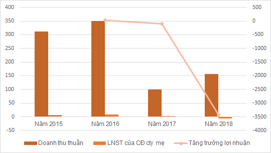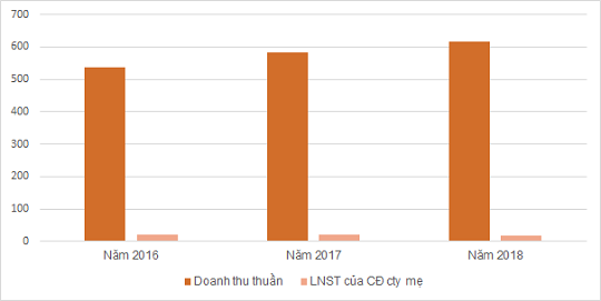 Năm 2018, doanh nghiệp ghi nhận doanh thu thuần 616,2 tỷ đồng, tăng 6% so với năm trước nhưng lãi sau thuế giảm 22% còn 17 tỷ đồng. Con số này cũng thấp hơn mức 20,3 tỷ đồng của năm 2016.