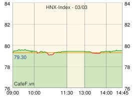 Ngược lại, HNX-Index giảm nhẹ 0,01 điểm xuống 79,29 điểm. HNX có 92 mã tăng/101 mã giảm. Tổng khối lượng giao dịch đạt hơn 47,8 triệu cổ phiếu, tương đương hơn 527 tỷ đồng.