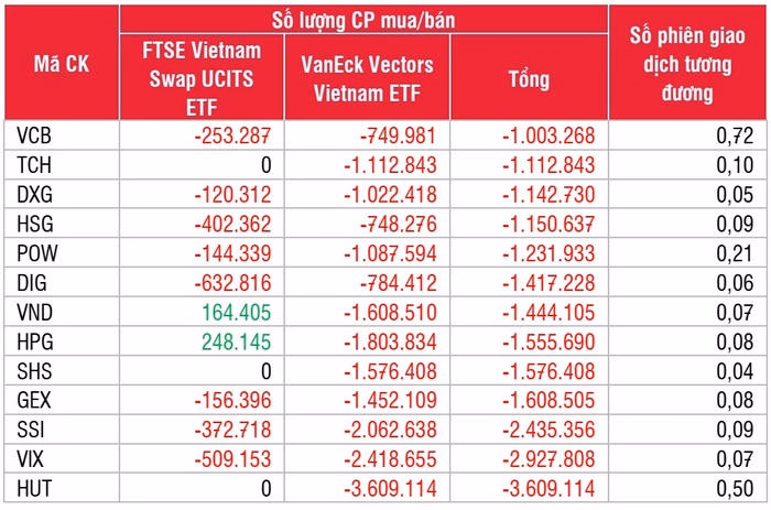 Giả định với các thay đổi như trên, danh mục chỉ số sẽ bao gồm 44 cổ phiếu. Tổng giá trị tài sản của quỹ VanEck Vectors Vietnam ETF tại ngày 24/11 đạt 13.562 tỷ đồng. Trong kỳ tái cơ cấu lần này, SSI ước tính Quỹ VanEck Vectors Vietnam ETF sẽ mua khoảng 6,9 triệu cổ phiếu CEO và 3,6 triệu cổ phiếu FTS.