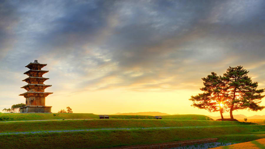 Wanggungri: Ngôi chùa 5 tầng tại Wanggungri ở Iksan, tỉnh Bắc Jeolla, là một ví dụ mang tính biểu tượng của kiến trúc tinh tế thời Baekje (18 trước Công nguyên - 660 sau Công nguyên). Ảnh: Seo Heun-kang.