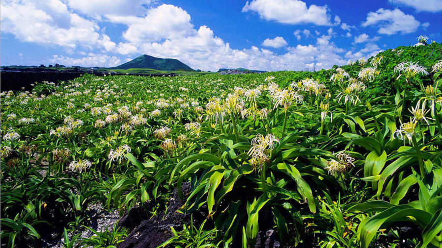 mọc. Nhìn từ xa, hòn đảo nhỏ ngoài khơi Jeju trông giống như một con thỏ trắng khi phủ đầy hoa trắng vào mùa hè. Tokkiseom có nghĩa là "đảo thỏ". Ảnh: Kim Bong-sun.