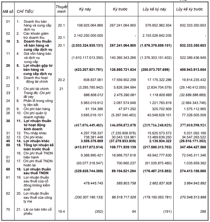 Tại CTCP Đầu tư và Công nghiệp Tân Tạo (HOSE: ITA), trong quý IV phải giảm trừ doanh thu hơn 2.142 tỷ đồng, do bị buộc thanh lý các hợp đồng thuê đất dài hạn liên quan đến dự án Kiên Lương được ký giữa ITA và CTCP Phát triển Năng lượng Tân Tạo (TEDC). Hệ quả, doanh thu cả năm âm hơn 1.576 tỷ đồng, kéo theo đó là khoản lỗ ròng hơn 179 tỷ đồng, kết quả kinh doanh của ITA cũng bị sụt giảm đáng kể hơn 60%, chỉ đạt 263 tỷ đồng.