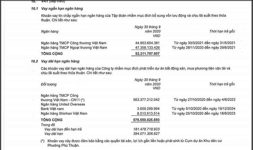Tính đến hết quý 3/2020, tổng nợ vay của An Gia Group lên đến 1.733 tỷ đồng, tăng 62% so với con số đầu năm. Trong đó, An Gia vay tổng cộng hơn 608,2 tỷ đồng tại Ngân hàng TMCP Công Thương Việt Nam (Vietinbank).