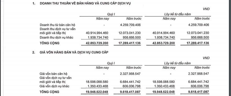Trong đó, doanh thu thuần ghi nhận hơn 13,6 tỷ đồng. Con số này giảm gần 4,6 lần so với cùng kỳ năm 2019 và cũng giảm hơn 20% so với quý liền trước.