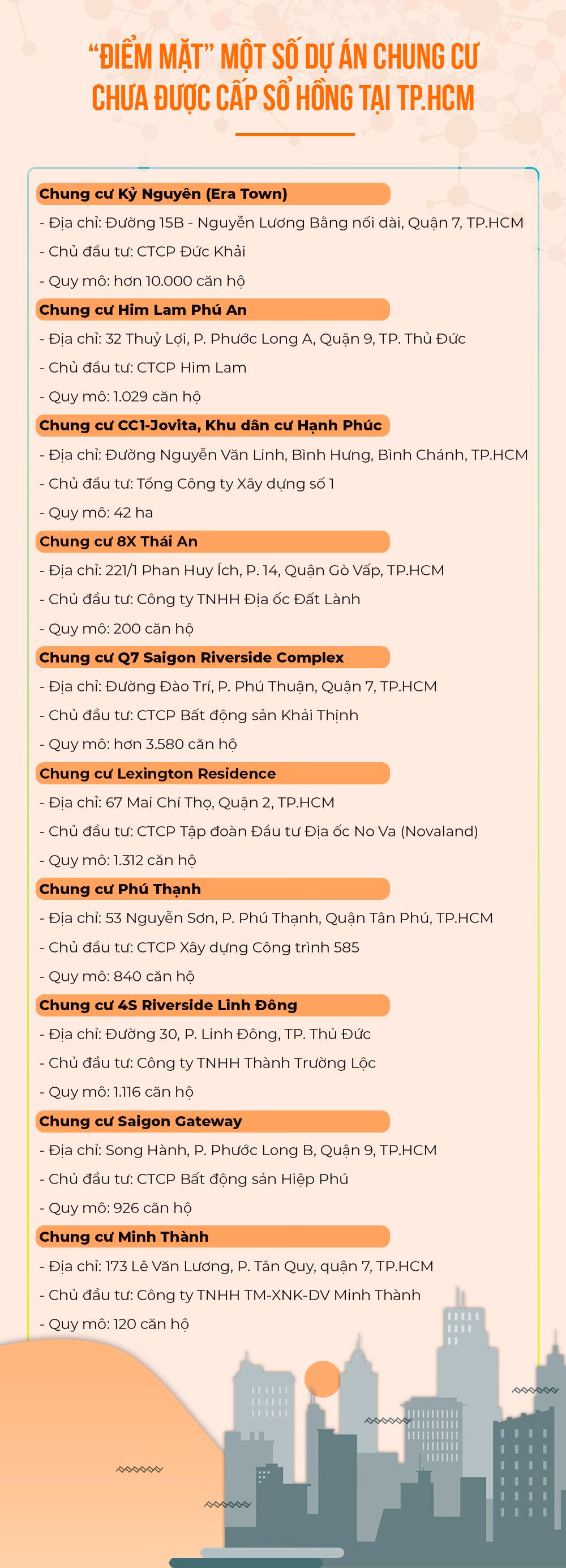 Tuy nhiên, địa bàn TP.HCM đang có khoảng 50.000 căn hộ chưa được cấp sổ hồng do gặp nhiều vướng mắc liên quan đến trách nhiệm của chủ đầu tư. Gần đây xảy ra nhiều trường hợp cư dân tại các dự án chung cư căng băng rôn đòi sổ hồng. Không ít trong số này là cư dân đã dọn đến sống nhiều năm nhưng sổ hồng vẫn “biệt tăm”.
