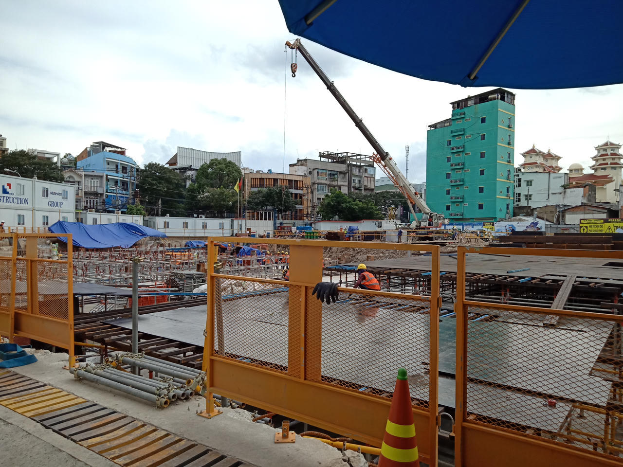 Giàn giáo, cần cẩu tại công trình. Ảnh: K. Chiêm.