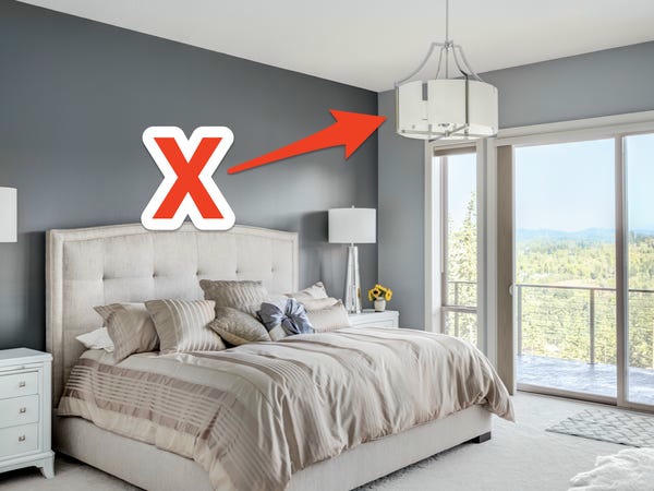 Theo Harrison-McAllister: “Đèn treo cao trong phòng ngủ có thể tạo cảm giác không thoải mái và lộn xộn với tổng thể phòng ngủ".