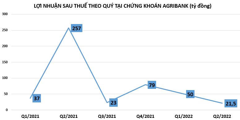 Sau khi trừ đi các khoản chi phí, Chứng khoán Agribank báo lãi sau thuế quý 2/2022 giảm 92% so với cùng kỳ năm trước, chỉ còn vỏn vẹn hơn 21,5 tỷ đồng.