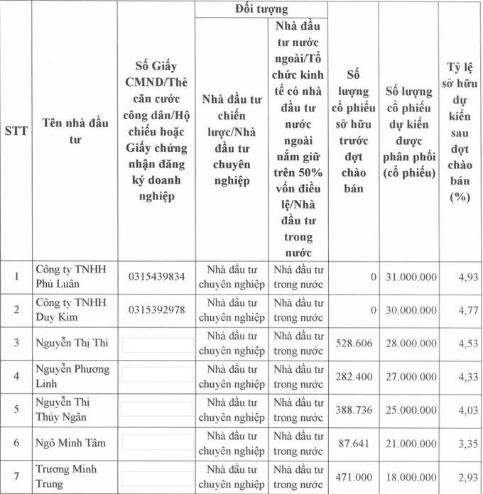 Sau giao dịch chào bán riêng lẻ này, tỷ lệ sở hữu của mỗi nhà đầu tư ở trên nằm từ 2,93 đến 4,93% nên khi thực hiện giao dịch bán cổ phiếu (sau thời gian hạn chế chuyển nhượng 1 năm) mà không cần phải công bố.