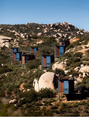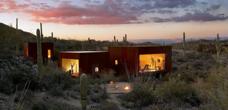 Được thiết kế bởi Gracia Studio ở phần sa mạc Sonoran của Mexico, những cabin và biệt thự riêng lẻ này trải rộng trên một sườn đồi. Ảnh: Luis Garcia.