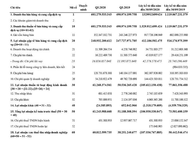 Theo BCTC hợp nhất quý III/2020 mà IBC vừa công bố cho thấy, doanh thu thuần của Apax Hodlings đạt 601 tỷ đồng, tăng 23%, lợi nhuận sau thuế đạt gần 60,9, tỷ đồng, tăng trưởng 59% so với cùng kỳ 2019.