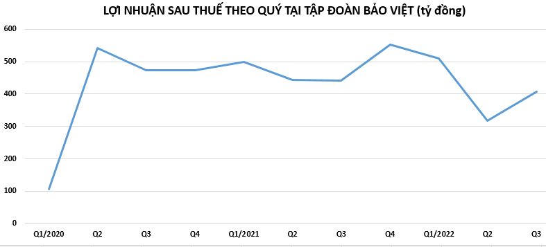 Điển hình tại ‘ông lớn’ Tập đoàn Bảo Việt (mã: BVH) ghi nhận lãi ròng quý 3/2022 giảm 14%, còn hơn 384 tỷ đồng do lợi nhuận gộp từ kinh doanh bảo hiểm giảm đến 93% so với cùng kỳ, chỉ còn vỏn vẹn hơn 18 tỷ đồng (nguyên nhân do chi phí hoạt động kinh doanh bảo hiểm tiếp tục là gánh nặng với hơn 10.030 tỷ đồng, tăng 15% - cao hơn mức tăng của doanh thu phí bảo hiểm thuần).