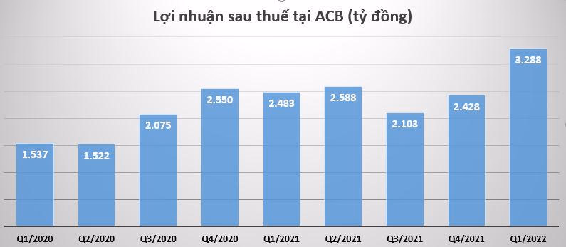 Đáng chú ý, thay vì trích lập dự phòng hơn 605 tỷ như cùng kỳ năm ngoái, quý 1/2022 ACB lại hoàn nhập 2,8 tỷ đồng. Từ đó góp phần đưa lợi nhuận trước thuế tại ACB tăng hơn 32%, đạt 4.114 tỷ đồng và lợi nhuận sau thuế đạt hơn 3.287 tỷ đồng.