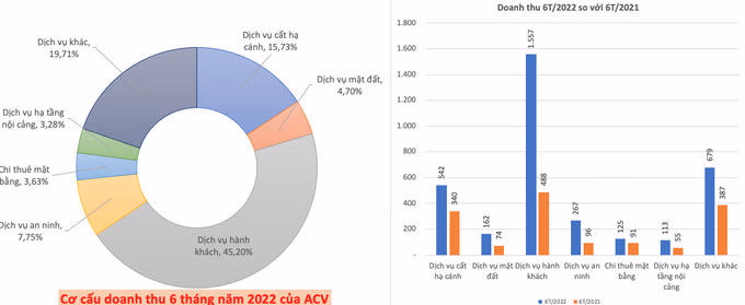Luỹ kế 6 tháng đầu năm 2022 doanh thu ACV đạt 5.538 tỷ đồng, tăng 61,6% so với cùng kỳ. Trừ các khoản liên quan, lợi nhuận trước thuế đạt 4.306 tỷ đồng, vượt 68% chỉ tiêu lợi nhuận được giao cho cả năm. Lợi nhuận sau thuế đạt 3.473 tỷ đồng, tăng 190% so với số lãi 1.200 tỷ đồng đạt được nửa đầu năm ngoái.