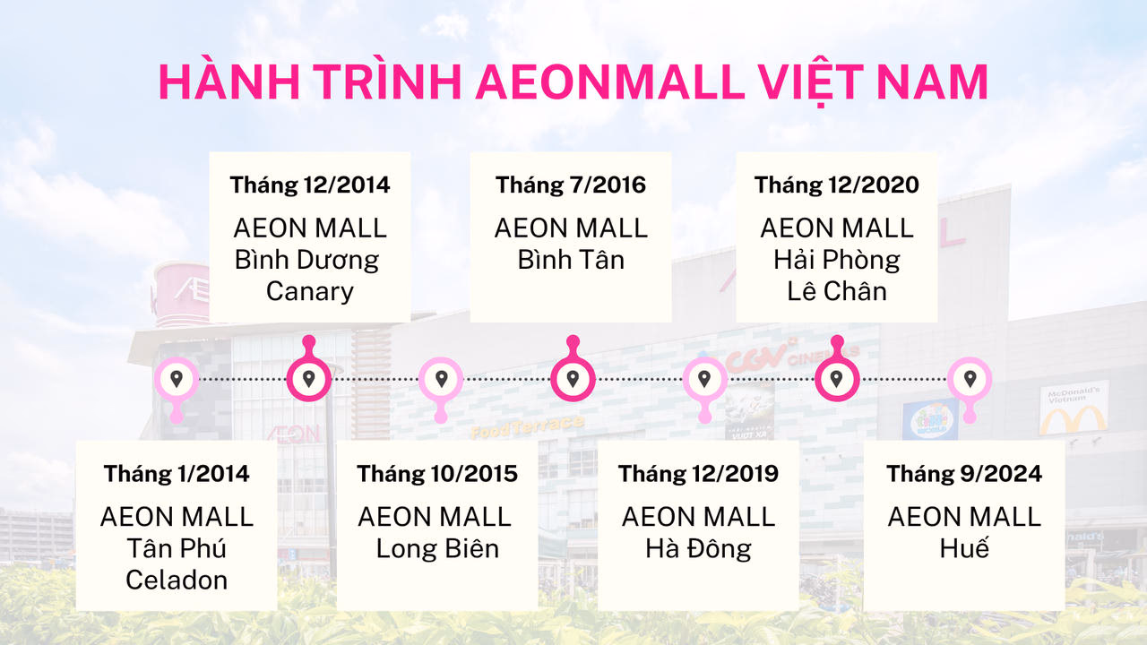 Trong quãng đường dài này, mặc dù có rất nhiều thăng trầm, từ việc điều chỉnh, sửa đổi luật, hay giai đoạn 2020 - 2021 bị ảnh hưởng bởi đại dịch Covid-19, nhưng công ty chúng tôi đã đoàn kết và thống nhất với nhau, cùng nỗ lực và chinh phục tất cả thách thức. Hiện tại, chúng tôi đã vận hành được 7 TTTM tại Việt Nam, trong đó có trung tâm AEON MALL Huế vừa khai trương vào tháng 9.