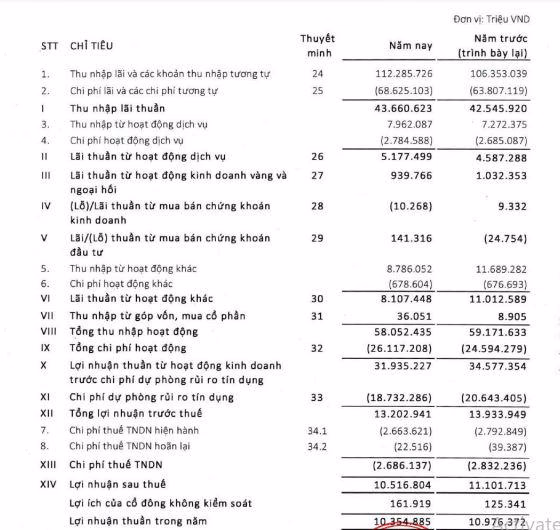 Theo đó, lãi trước thuế tại Agribank giảm 5,2% so với năm trước, đạt 13.203 tỷ đồng; lợi nhuận sau thuế giảm 5,3% xuống còn 10.517 tỷ đồng. Đáng chú ý, lãi dự thu tại Agribank tính đến 31/12/2020 ghi nhận gần 12.015 tỷ đồng. Do đó, tỷ lệ lãi dự thu trên lợi nhuận sau thuế tại Agribank gấp 1,1 lần