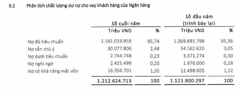 Về tình hình nợ xấu tại Agribank, tính đến 31/12/2021, tổng nợ xấu đã tăng 21% so với đầu năm, lên mức gần 21.527 tỷ đồng, chiếm 1,78% tổng dư nợ. Trong đó, nợ nghi ngờ tăng 23% lên mức 2.425 tỷ đồng; nợ có khả năng mất vốn tăng 31% lên mức gần 16.357 tỷ đồng, kéo tỷ lệ nợ xấu tăng từ 1,59% lên 1,78%. Như vậy, tổng nợ xấu tại Agribank chỉ đứng sau BIDV (21.765 tỷ đồng).