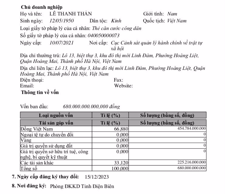 Theo thông tin trên Cổng thông tin quốc gia về đăng ký doanh nghiệp, tại ngày cấp đăng ký thay đổi 15/12/2023, công ty có địa chỉ trụ sở chính nằm tại số nhà 25, tổ dân phố 21, phường Him Lam, thành phố Điện Biên Phủ, tỉnh Điện Biên.