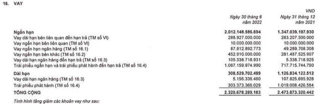 Trong kỳ này công ty đang có khoản nợ 580,5 tỷ đồng trái phiếu dài hạn đến hạn phải trả, 486,6 tỷ đồng trái phiếu ngắn hạn và 303,4 tỷ đồng trái phiếu dài hạn.