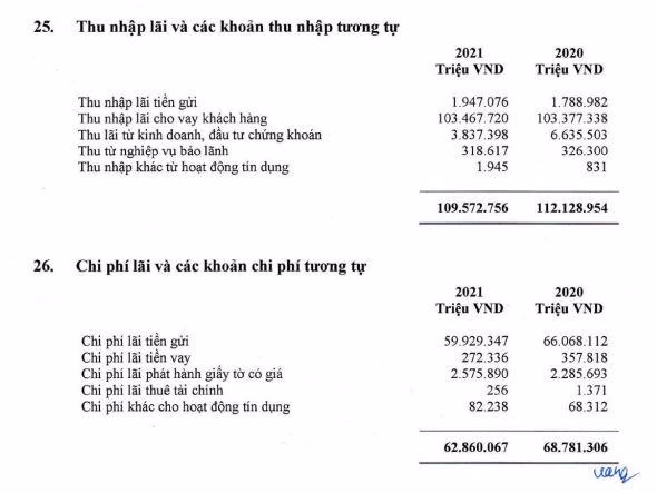 Theo báo cáo tài chính riêng lẻ năm 2021, thu nhập lãi thuần tại Agribank đạt hơn 46.712 tỷ đồng, tăng 7,8% so với năm 2020. Nếu nguồn thu này đến từ việc mở rộng cho vay các khách hàng, phần nào cho thấy khả năng tăng tín dụng của ngân hàng Agribank khá tốt và hiệu quả. Thực tế, thu nhập từ lãi vay và các khoản thu nhập tương tự của Agribank năm 2021 chỉ đạt khoảng 109.572 tỷ đồng, giảm 2% so với năm 2020.