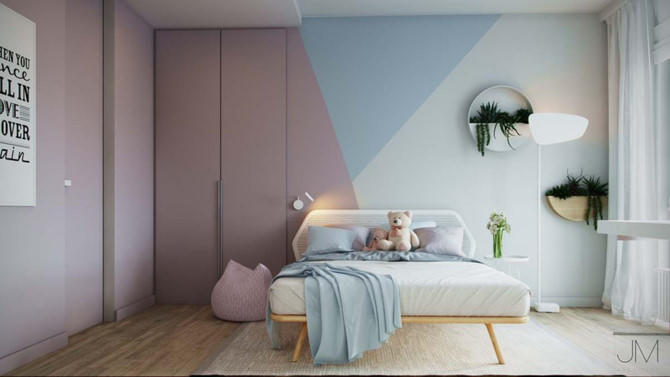 Không gian căn phòng trở nên ấm áp, thoáng mát hơn khi có sự phối kết hợp các màu sắc: hồng, xanh, trắng đan xen.
