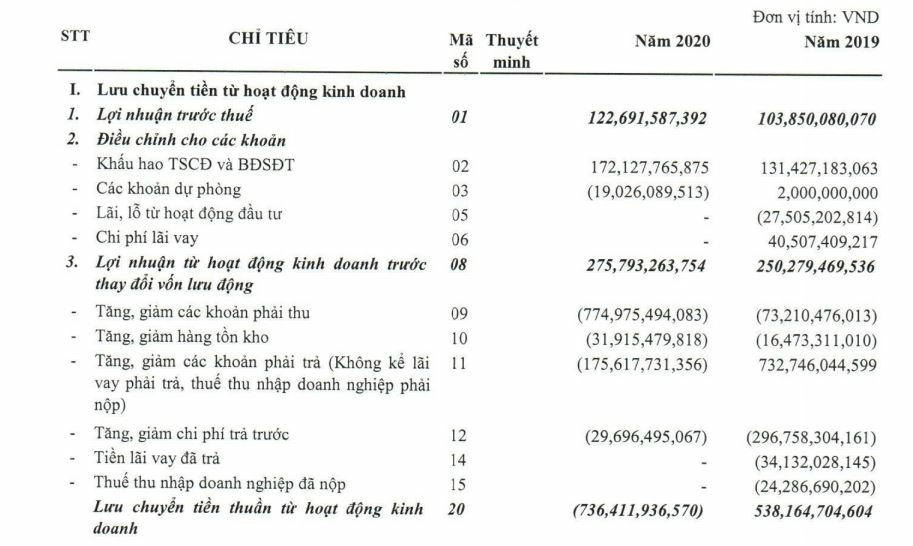Ngoài ra, lưu chuyển tiền thuần trong kỳ âm gần 327 tỷ đồng trong khi năm 2019 dương hơn 51 tỷ đồng.