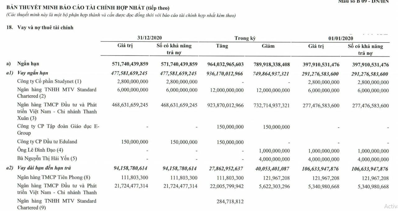 Theo BCTC hợp nhất quý 4/2020, tại mục các khoản phải thu ngắn hạn, Apax Holdings đang ứng cho ông Nguyễn Ngọc Thủy tổng gần 164 tỷ đồng. Trong đó, khoản đặt cọc hơn 121 tỷ đồng và lãi đặt cọc 42,5 tỷ đồng mua cổ phần của CTCP Anh ngữ Apax theo thỏa thuận chuyển nhượng ngày 2/1/2020.