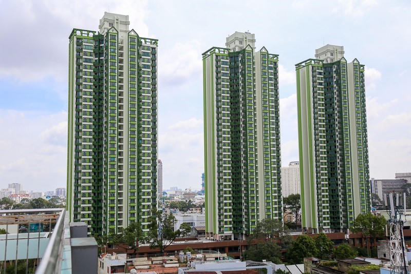 The Garden Apartment với 3 tòa tháp cao 33 tầng, 648 căn hộ được thay màu xanh tơi so với hình ảnh được ví như “3 cây nhang” thì nay được chuyển thành “ba cây trúc” với màu xanh nổi bật.