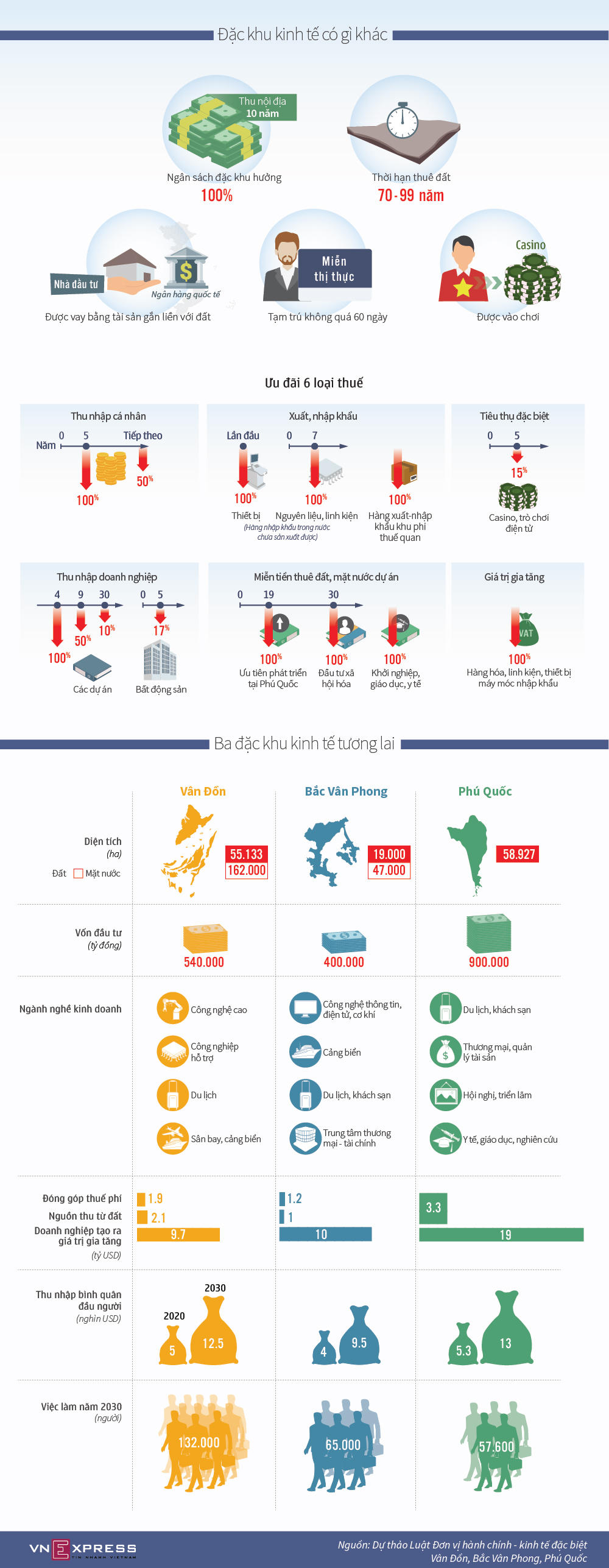 Ba đặc khu kinh tế tương lai được ưu đãi gì?