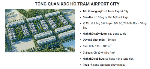Theo đó, Dự án Hồ Tràm Airport City (xã Láng Dài, huyện Đất Đỏ), bao gồm 50 GCNQSDĐ trên diện tích khoảng 6.975m2 từ thửa 601-650, tờ 42; có quy mô 109 nền với giá 6 triệu đồng/m2. Hiện dự án Hồ Tràm Airport đang hoàn toàn là một bãi đất trống. Tại đây, chủ đầu tư chỉ cho đổ một con đường đất nhỏ, chưa có hệ thống điện, nước.