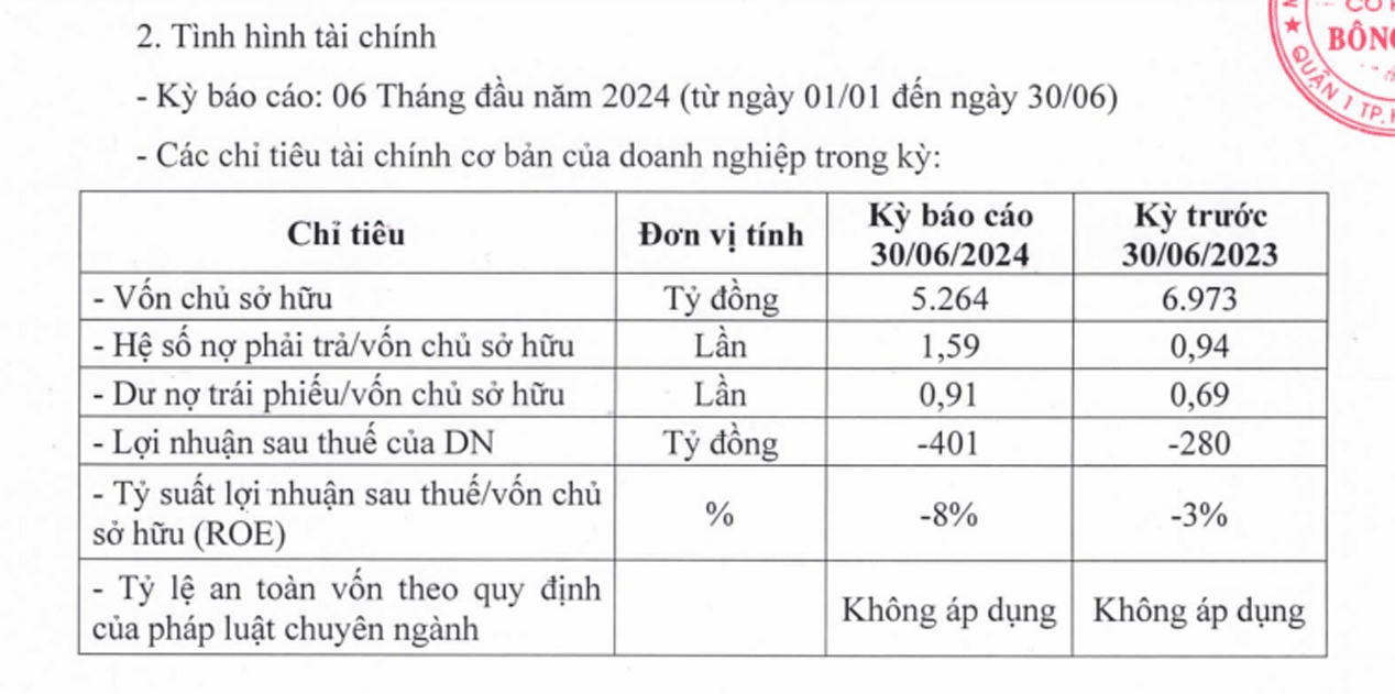 Tính tới cuối tháng 6/2024, Bông Sen có tổng nợ phải trả khoảng gần 8.370 tỷ đồng, trong đó có hơn 4.790 tỷ đồng nợ trái phiếu, so với vốn chủ sở hữu 5.264 tỷ đồng.