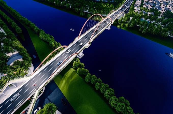 Phần cầu dẫn phía Á Lữ gồm 4 nhịp; phần cầu dẫn phía Mỹ Độ gồm 3 nhịp. Đường dẫn lên cầu có chiều rộng nền đường 36m, mặt đường 18-21m. Tổng kinh phí xây lắp gần 300 tỷ đồng từ nguồn vốn vay của Ngân hàng Phát triển châu Á và vốn đối ứng ngân sách TP Bắc Giang.