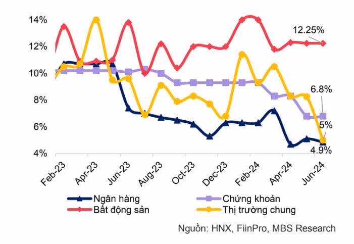 Trong nửa đầu năm 2024, Ngân hàng trở thành nhóm ngành dẫn dắt thị trường TPDN trong khi áp lực trả nợ vẫn chưa buông các doanh nghiệp bất động sản.