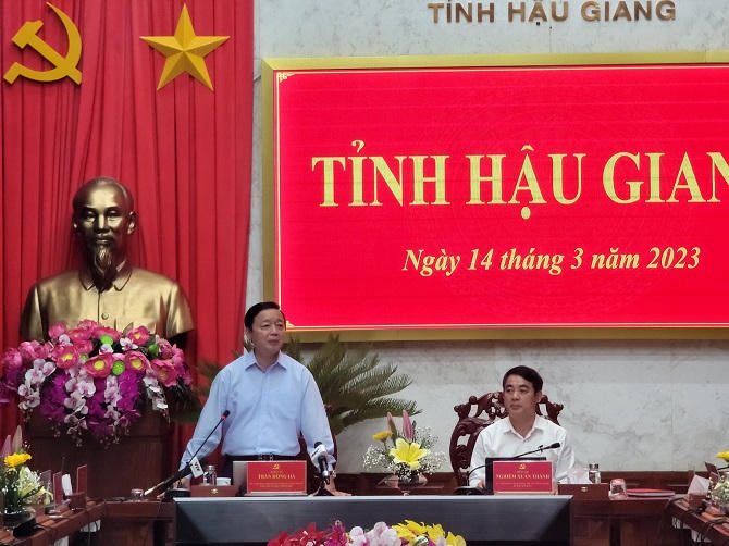 Tối 14/3, tại Hậu Giang, Phó Thủ tướng Chính phủ Trần Hồng Hà cùng Đoàn công tác có buổi làm việc với 13 tỉnh, thành phố khu vực Đồng bằng sông Cửu Long về nguồn cung ứng vật liệu san lấp cho các dự án giao thông của vùng.