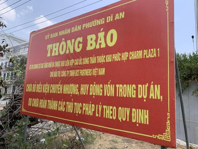 Chiều 23/4/2024, ông Võ Thanh Bình, Phó chủ tịch UBND phường Dĩ An phụ trách khối kinh tế xác nhận với phóng viên Tạp chí Tài chính Doanh nghiệp, tấm bảng có nội dung: “UBND phường Dĩ An thông báo: Dự án chung cư cao tầng khối B4 thuộc Khu liên hợp cao ốc Sóng Thần, thuộc Khu phức hợp Charp Plaza 1 do Công ty THNH DCT Parners Việt Nam làm chủ đầu tư, chưa đủ điều kiện chuyển nhượng, huy động vốn dự án. Do chưa hoàn thành các thủ tục pháp lý theo quy định” là do UBND phường dựng lên trên hành làng đường bộ ngay phía trước công trình đang thi công nhằm khuyến cáo người dân không mua bán, giao dịch sẽ dẫn đến tranh chấp, kiện tung, làm mất trật tự xã hội.