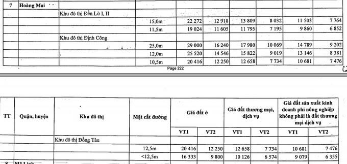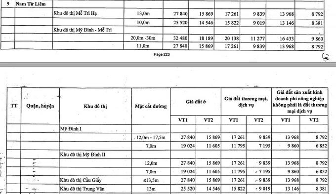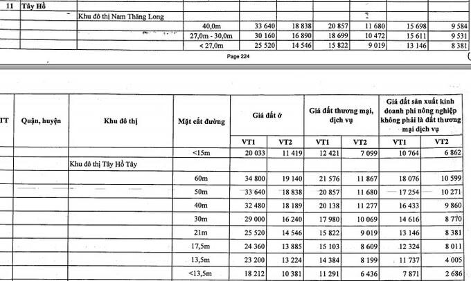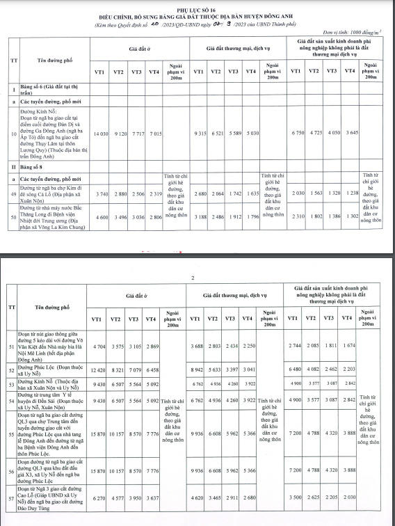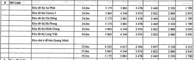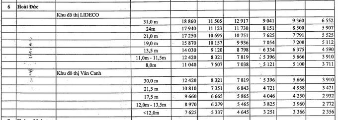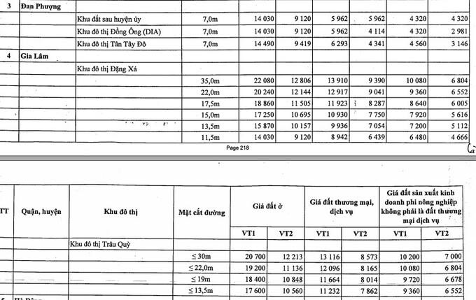 Bên cạnh đó, TP Hà Nội cũng điều chỉnh giá đất tại một số quận huyện, cụ thể: