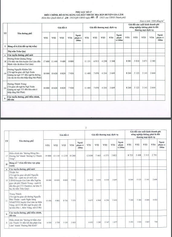 UBND TP Hà Nội vừa ban hành Quyết định số 20/2023/QĐ-UBND, sửa đổi, bổ sung, điều chỉnh Quyết định số 30/2019/QĐ-UBND về việc ban hành quy định và bảng giá các loại đất trên địa bàn thành phố.