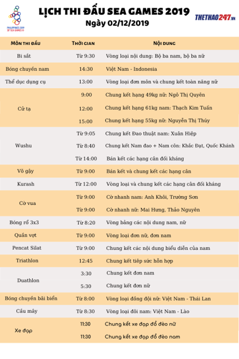 Đoàn thể thao Việt Nam giành 7 huy chương trong buổi sáng ngày 2/12/2019. Dự kiến, buổi chiều sẽ là thời điểm bùng nổ của chúng ta.