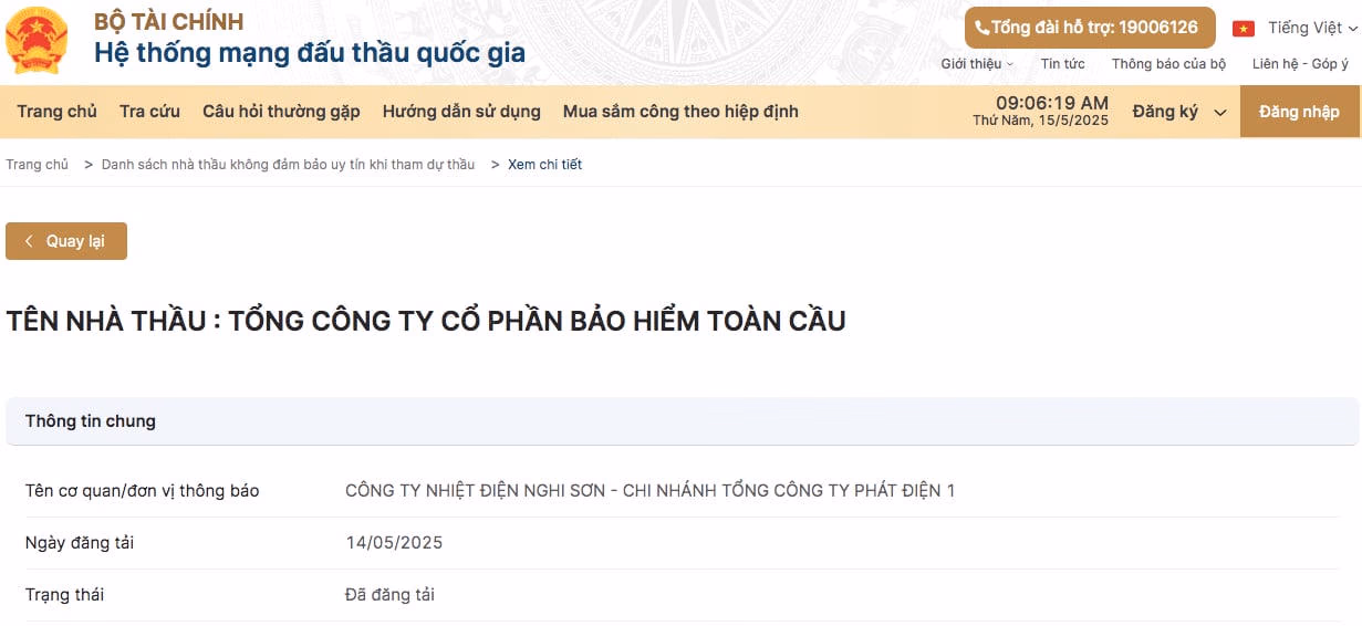 Bảo hiểm Toàn Cầu bị liệt vào danh sách nhà thầu không đủ uy tín
