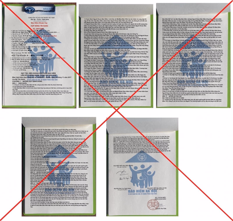 Về nội dung trên, BHXH TP Hà Nội khẳng định rằng đơn vị này không có chức năng bảo hiểm cho các khoản vay và xác nhận rằng chữ ký và con dấu trong văn bản là giả mạo. Chữ ký của Phó Giám đốc Bảo hiểm Xã hội TP Hà Nội bị đối tượng đưa vào phần cuối của hợp đồng là một hành vi vi phạm pháp luật.