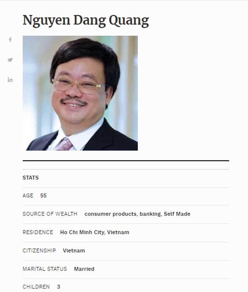 Ông Nguyễn Đăng Quang trong danh sách Forbes