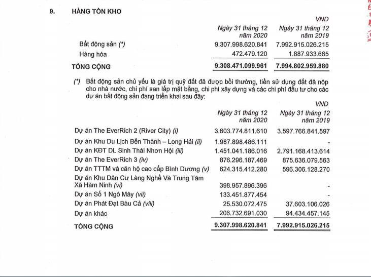 Tại ngày 31/12/2020, tổng tài sản của Novaland trên 144.500 tỷ đồng, tăng 60,6% so với cuối năm 2019. Trong đó, hàng tồn kho 86.847 tỷ đồng, tăng 51,8% so với thời điểm 31/12/2019 và tăng 9,4% so với thời điểm cuối tháng 9/2020, chiếm 60% tổng tài sản.