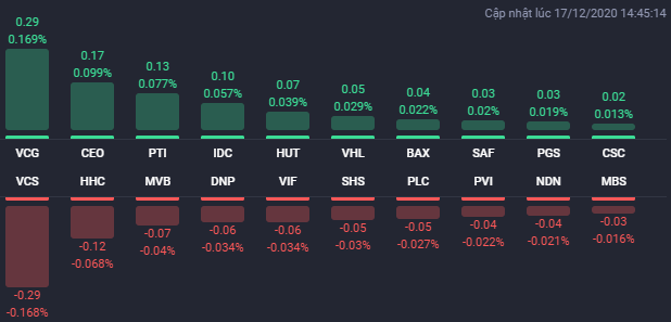 Chiều ngược lại, một vài mã lớn như GVR, TPB, VCG, VEA… đi ngược lại sự rung lắc của thị trường chung và có đóng góp quan trọng trong việc kìm hãm phần nào đà giảm của VN-Index cũng như giúp HNX-Index và UPCoM-Index giữ được sắc xanh.